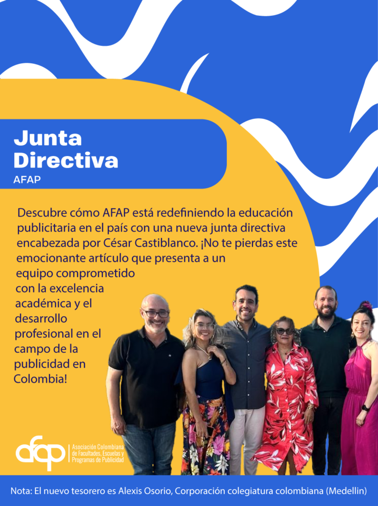 Conoce cómo la AFAP redefine la educación publicitaria en el país bajo su nueva junta directiva, liderada por César Castiblanco. Un equipo comprometido con la excelencia académica y el crecimiento profesional de la publicidad.